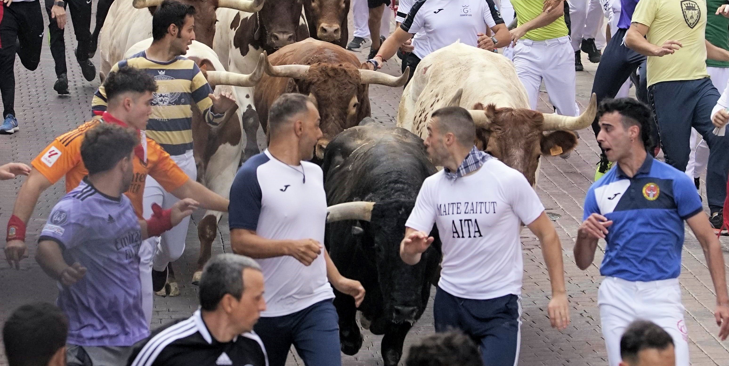 La manada ha regalado carreras de vértigo y el encierro ha terminado con seis atenciones, una de ellas por una cornada en el pie de un corredor.