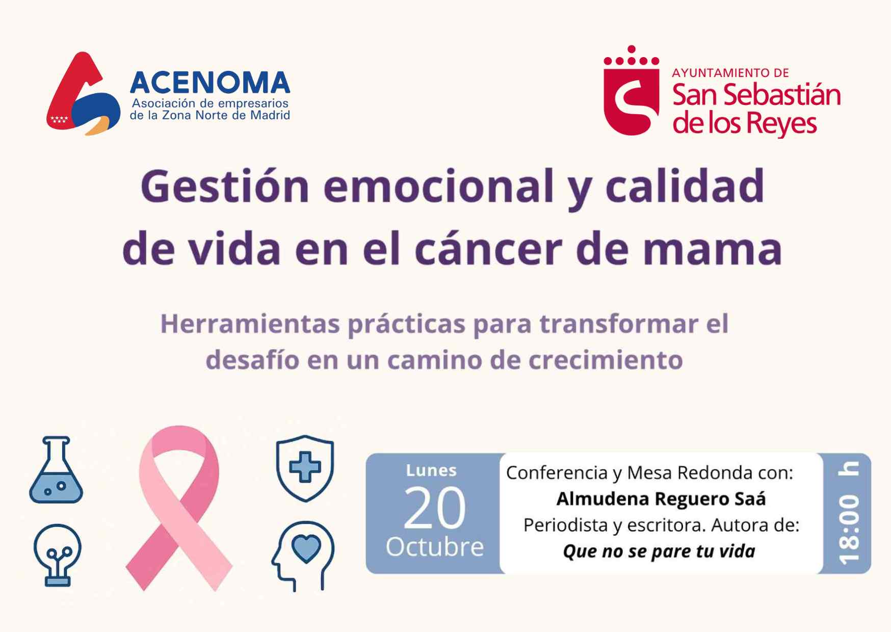La Asociación Comarcal de Empresarios de la Zona Norte de Madrid (ACENOMA), con la colaboración del Ayuntamiento, organiza una jornada con motivo del Día Mundial del Cáncer de Mama, que se conmemora el 19 de octubre.