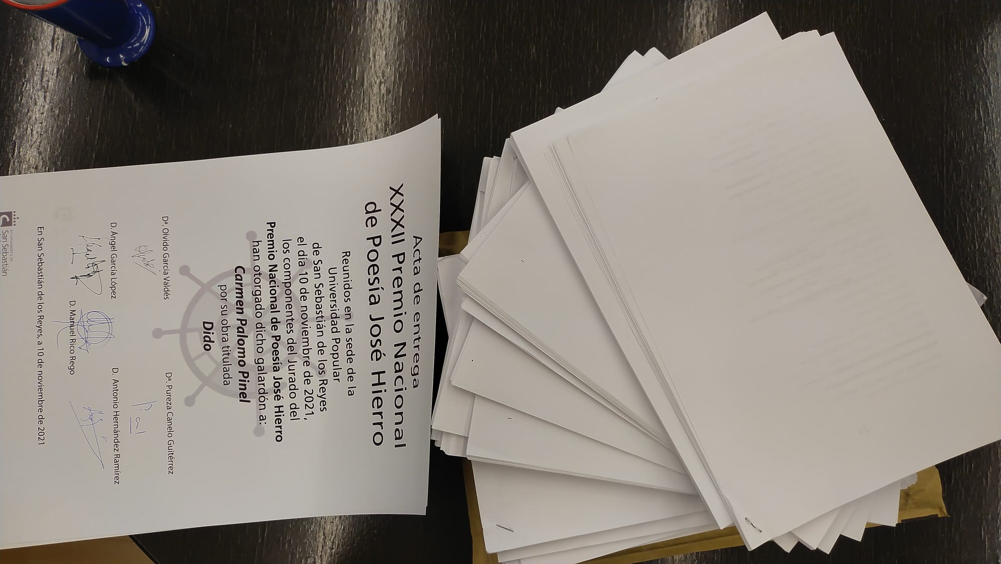 El XXXII Premio Nacional de Poesía José Hierro, que otorga la Universidad Popular José Hierro del Ayuntamiento de San Sebastián de los Reyes, ha recaído en esta edición en el poemario ‘Dido’, de Carmen Palomo Pinel (Madrid, 1980).