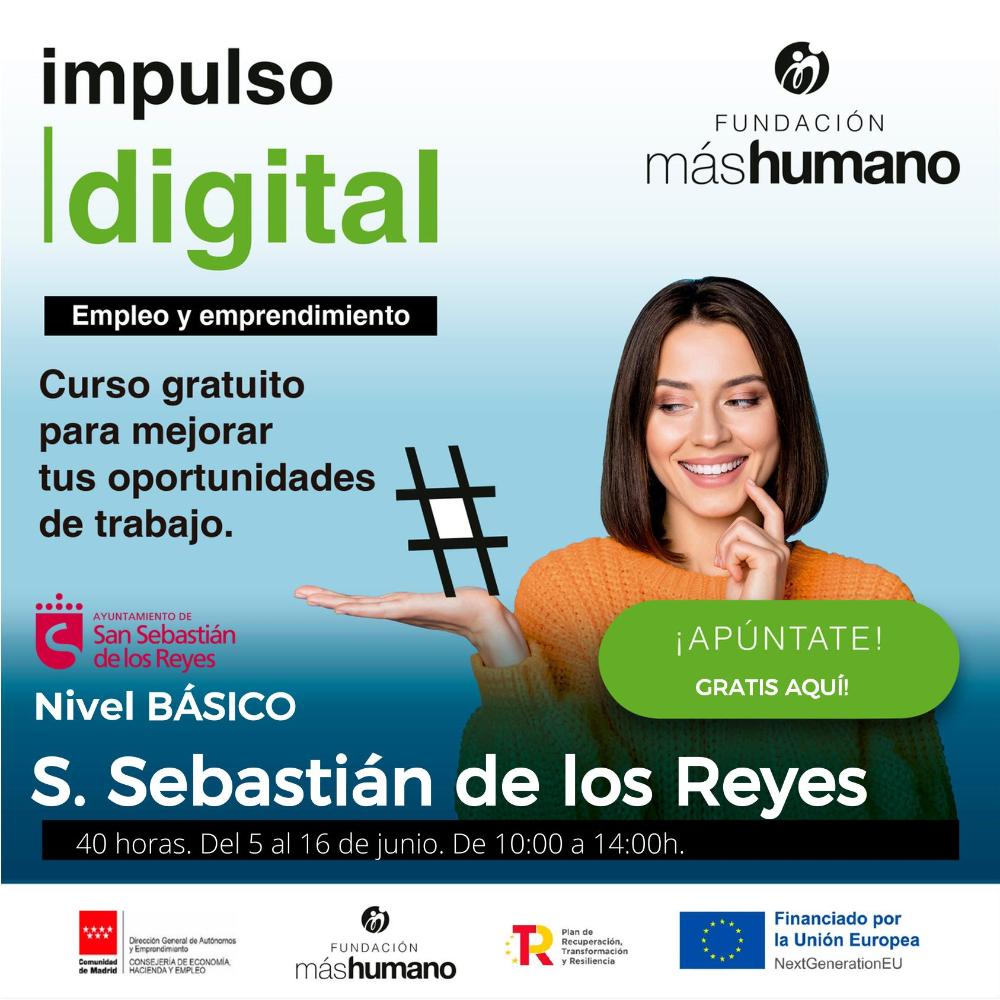 Se trata de una formación en herramientas digitales que multipliquen las opciones en el mercado de trabajo en todos sus formatos. El programa Impulso Digital consta de dos cursos de niveles básico y avanzado, de 40 horas cada uno. Estos programas están dirigidos a mujeres a partir de 16 años empadronadas en cualquier municipio de la Comunidad de Madrid.