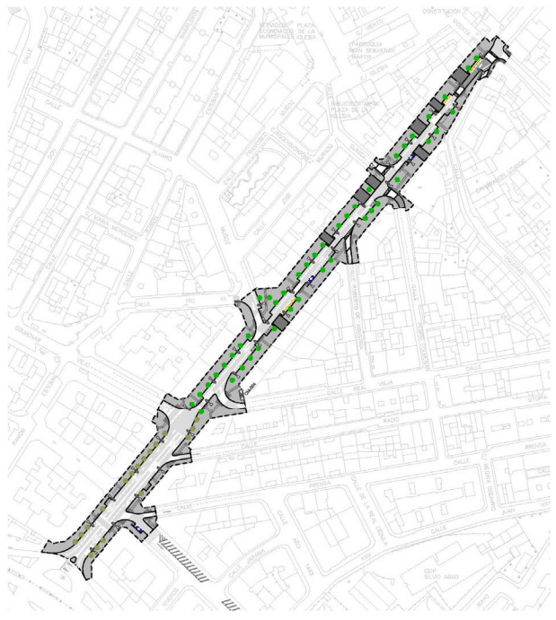 Partiendo del esquema propuesto para toda la calle Real en el Plan Municipal de Movilidad Urbana Sostenible (PMUS), se concreta la potenciación del espacio peatonal con el fin de priorizar el modo de transporte a pie frente a modos rodados en vehículos a motor. Ello requiere, entre otras medidas, una reconfiguración espacial que es preciso diseñar antes de su implementación.