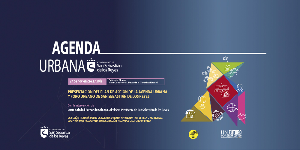 El próximo miércoles 27 de noviembre, a las 17:30 horas, se presentará el Plan de Acción de la Agenda Urbana y Foro Urbano de San Sebastián de los Reyes, con la intervención de la alcaldesa, Lucía Fernández. En este evento, que está abierto a toda la ciudadanía, se informará sobre la aprobación de la Agenda Urbana, sobre los próximos pasos en la realización de la Agenda y sobre el papel del Foro Urbano de la ciudad.