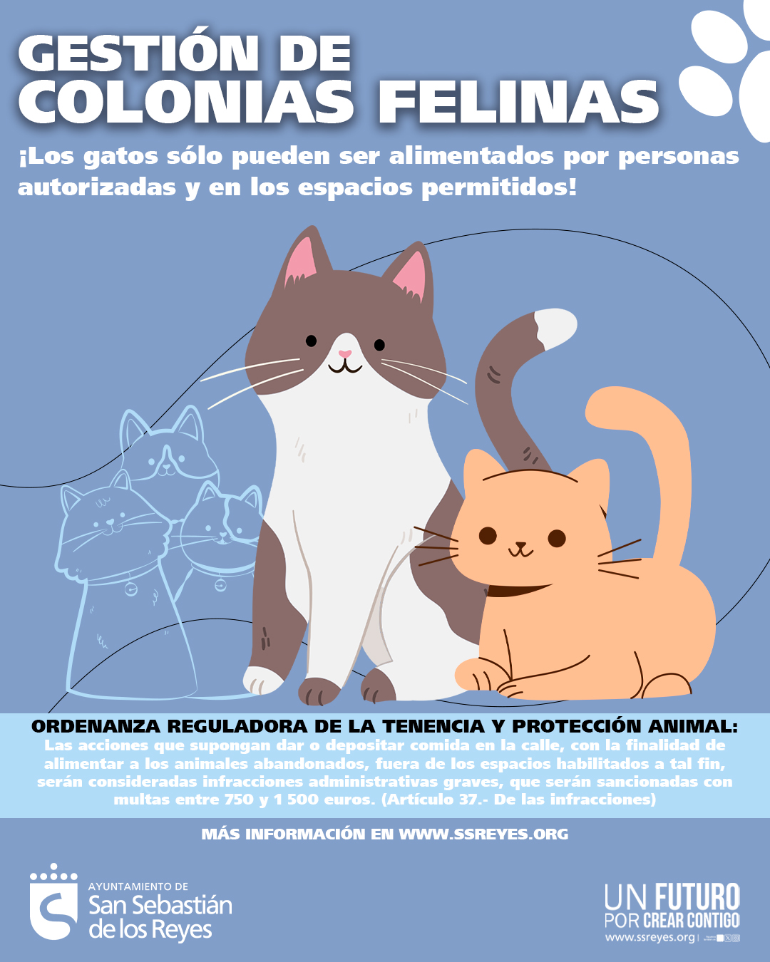 La prohibición de no alimentarlos no es por motivo poco empático con los animales, es siempre con la finalidad de lograr la mejora de las condiciones de las colonias felinas y facilitar la convivencia entre la ciudadanía y los animales. Dicha prohibición se recoge en la Ordenanza reguladora de la tenencia y protección animal, (aprobada por el Ayuntamiento Pleno en sesión de 19/01/2011 y publicada en el BOCM nº 61, de 14 de marzo de 2011), en su art 12, punto 6.