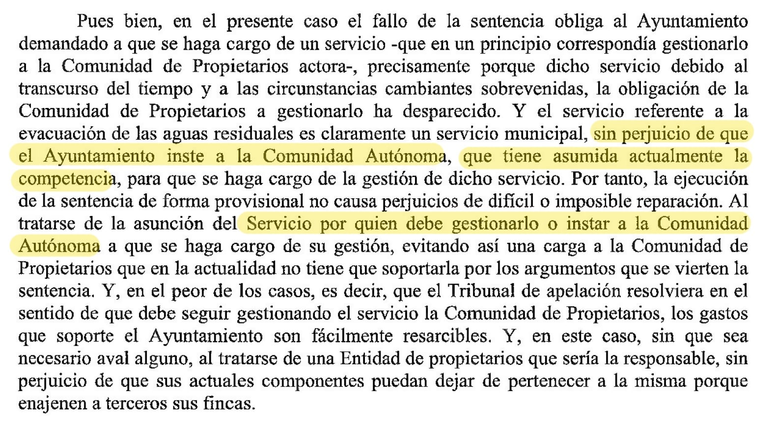 En el reciente auto de ejecución de sentencia del 29 de julio, en la que se indica que es el Ayuntamiento quien debe hacerse cargo de este servicio también señala que este municipio puede instar “a la Comunidad Autónoma