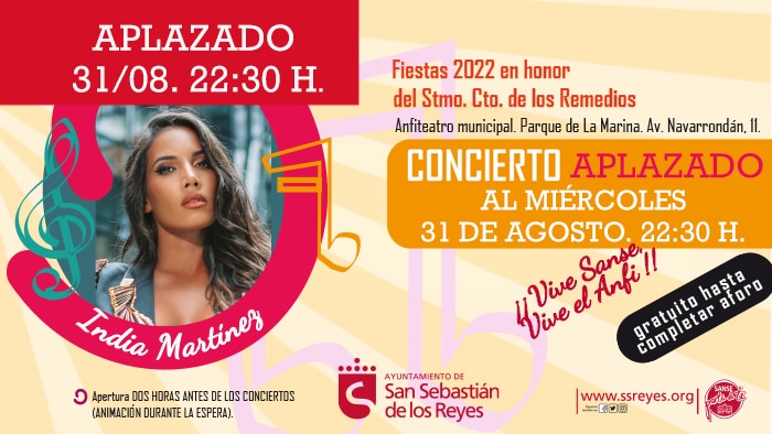 La artista está atravesando un momento muy difícil tras la pérdida de un familiar. Acompañamos a India y a sus familiares en el sentimiento. Esperamos el próximo miércoles disfrutar de ella y arroparla entre todos los presentes en una noche que, sin duda, será muy especial.