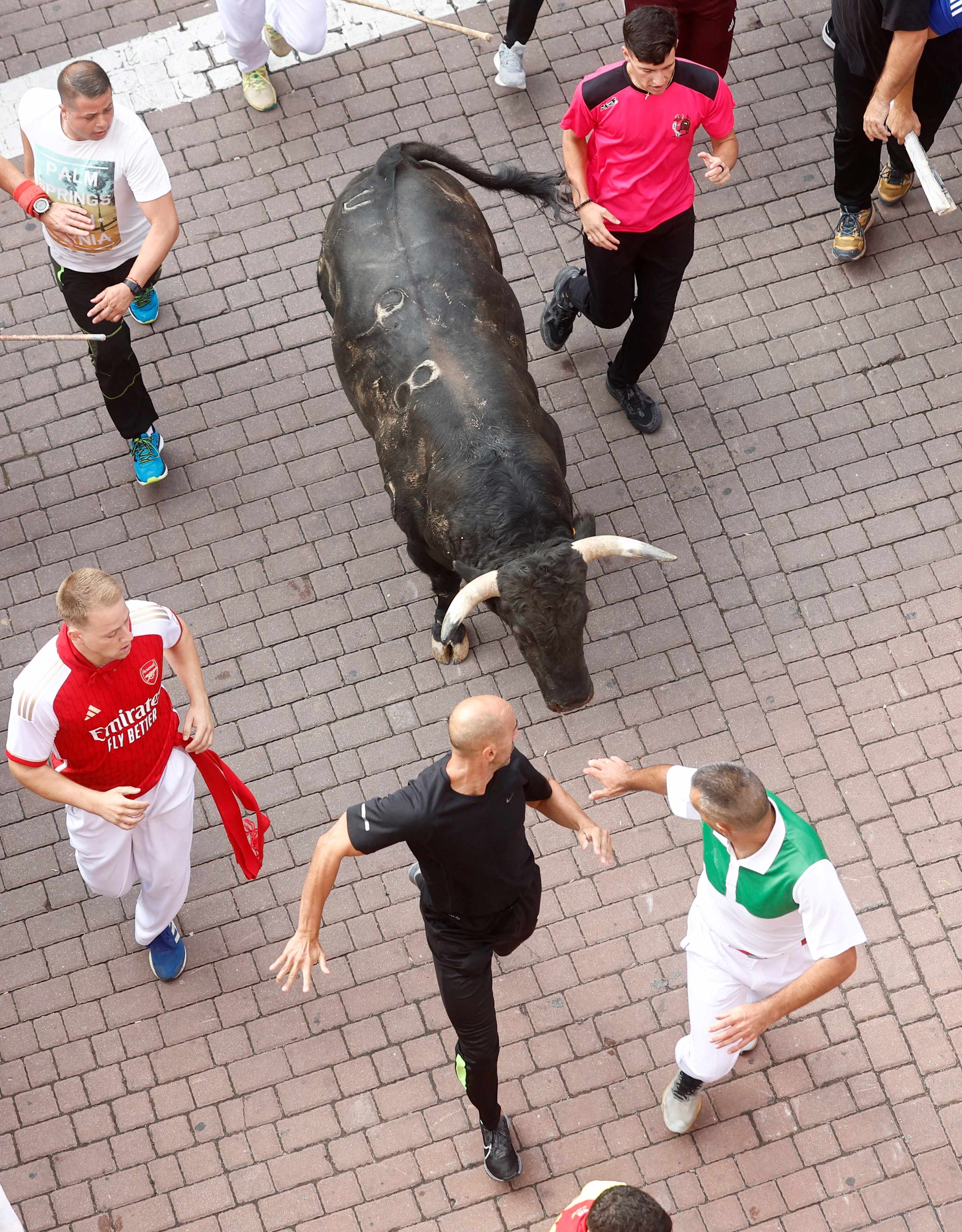 Los astados han llevado un tranco vibrante, con la manada muy estirada, dos toros por delante y uno de ellos cabeceando y “buscando” en los laterales de la manga. “Este tipo de comportamiento es muy positivo para los corredores y hace que el encierro sea más emocionante”, ha declarado Carlos Bolarín, concejal de Festejos.