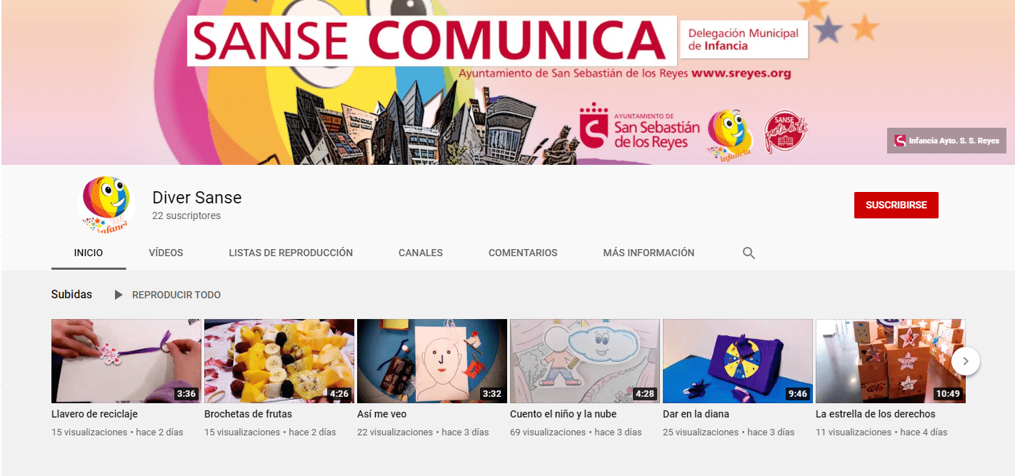 Algunos de los vídeos que ya se han subido y que se pueden encontrar en la plataforma son: “Presentación Diver Sanse”, “Dar en la diana”, “La estrella de los derechos”, “Recordando los derechos en la Semana de la Infancia”, “Cuento el niño y la nube”, “Cuento de las hojas”, “Así me veo”, “Brochetas de fruta” y muchos más. Para disfrutar de “Diver Sanse” hay que buscar uno de los vídeos del canal y suscribirse.