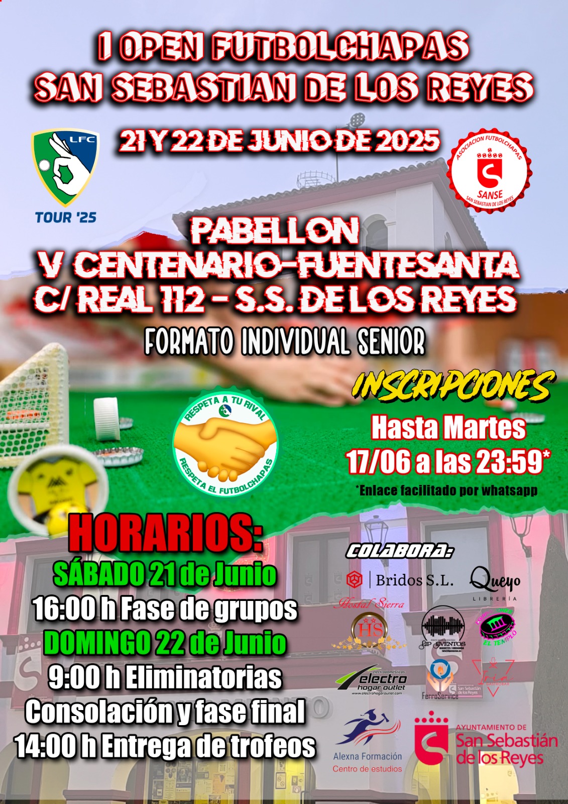 El torneo, que forma parte del circuito nacional Tour '25 de la Liga Futbolchapas, está organizado por la Asociación Futbolchapas San Sebastián de los Reyes y se disputará en formato individual senior.