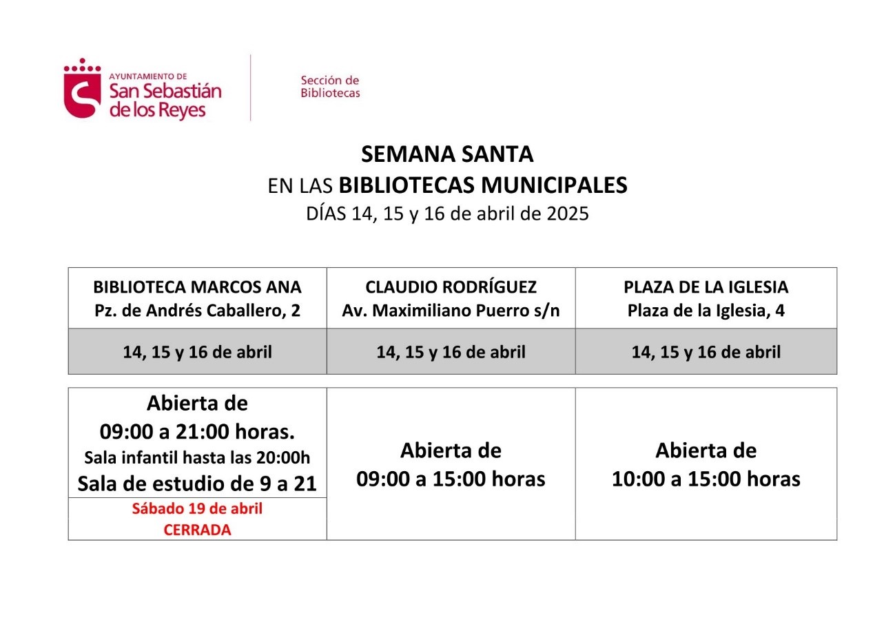 Este es el horario especial de las bibliotecas municipales en Semana Santa: