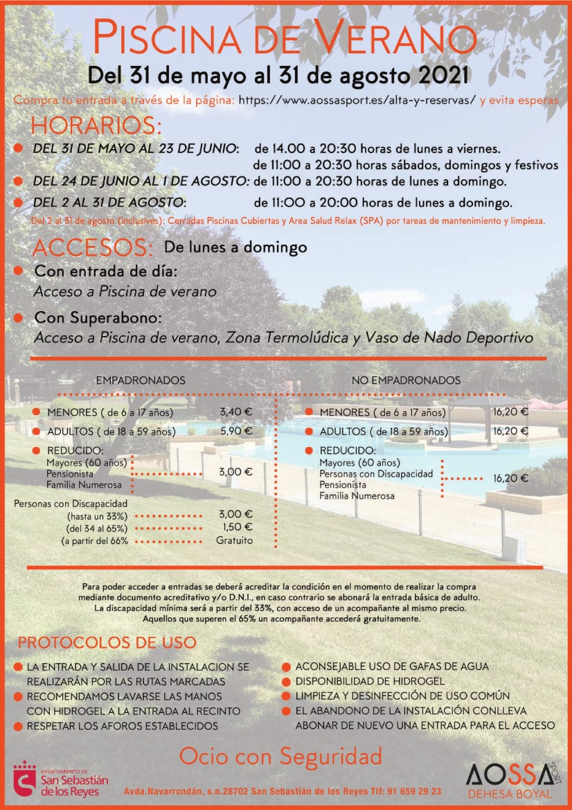 Este verano el Ayuntamiento de San Sebastián de los Reyes seguirá subvencionando la entrada a la piscina municipal a los vecinos empadronados y a otros colectivos tal y cómo ocurrió el año pasado, manteniendo unas tarifas más bajas que antes de la pandemia de 2020.