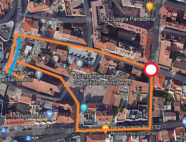 El recorrido discurre por la Plaza de la Iglesia – Calle San Roque – Calle Real – Calle de Vicenta Montes – Plaza de la Constitución – Calle del Viento – Plaza de la Iglesia.