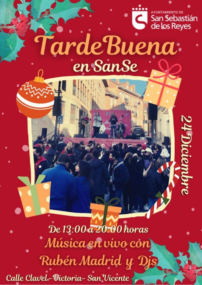 Este es el primer año que las calles del centro de Sanse tendrán su propia animación los días 24 y 31 de diciembre, desde las 13:30 hasta las 20 horas. La “tardebuena” será el mejor preámbulo de las típicas cenas navideñas y se celebrará en la confluencia de las calles Victoria, San Vicente y Clavel, con la actuación del artista Rubén Madrid y Dj’s que amenizarán la tarde.