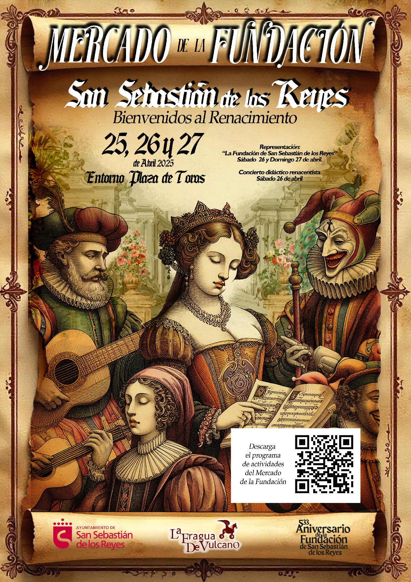 Los días 26 y 27 de abril, a las 12, 13:30, 17 y 19 h, miembros de la Asociación de Teatro Musical protagonizarán la representación de ‘La Fundación de San Sebastián de los Reyes’ y, el día 26, a las 17:30 h, se celebrará el concierto didáctico renacentista a cargo de Armonía Danza.