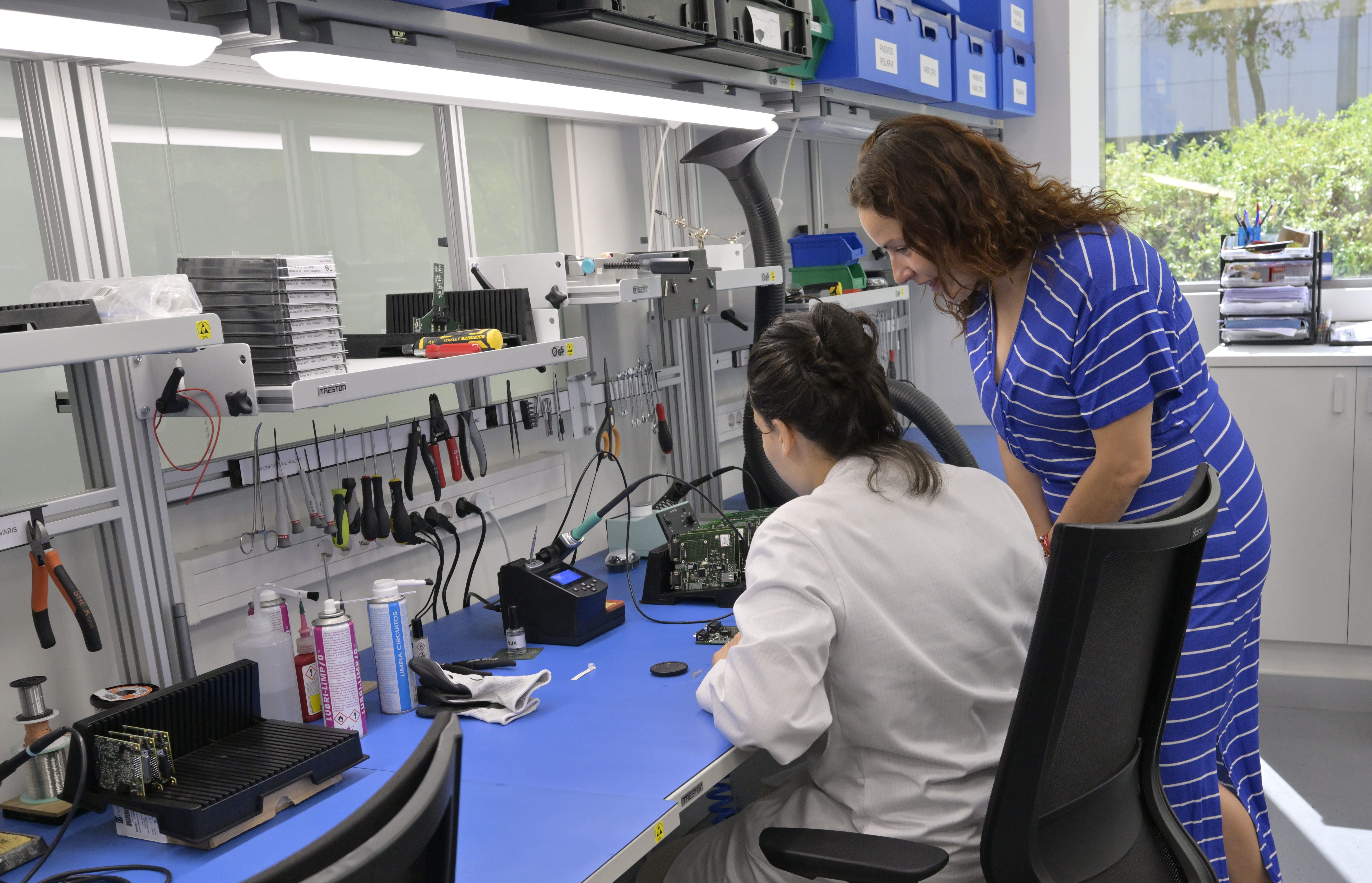 La alcaldesa de la ciudad, Lucía S. Fernández Alonso, junto con la tercer teniente y concejal delegada de Innovación, Comercio y Empleo, Nuria Castro, ha visitado UAV Navigation-Grupo Oesía.