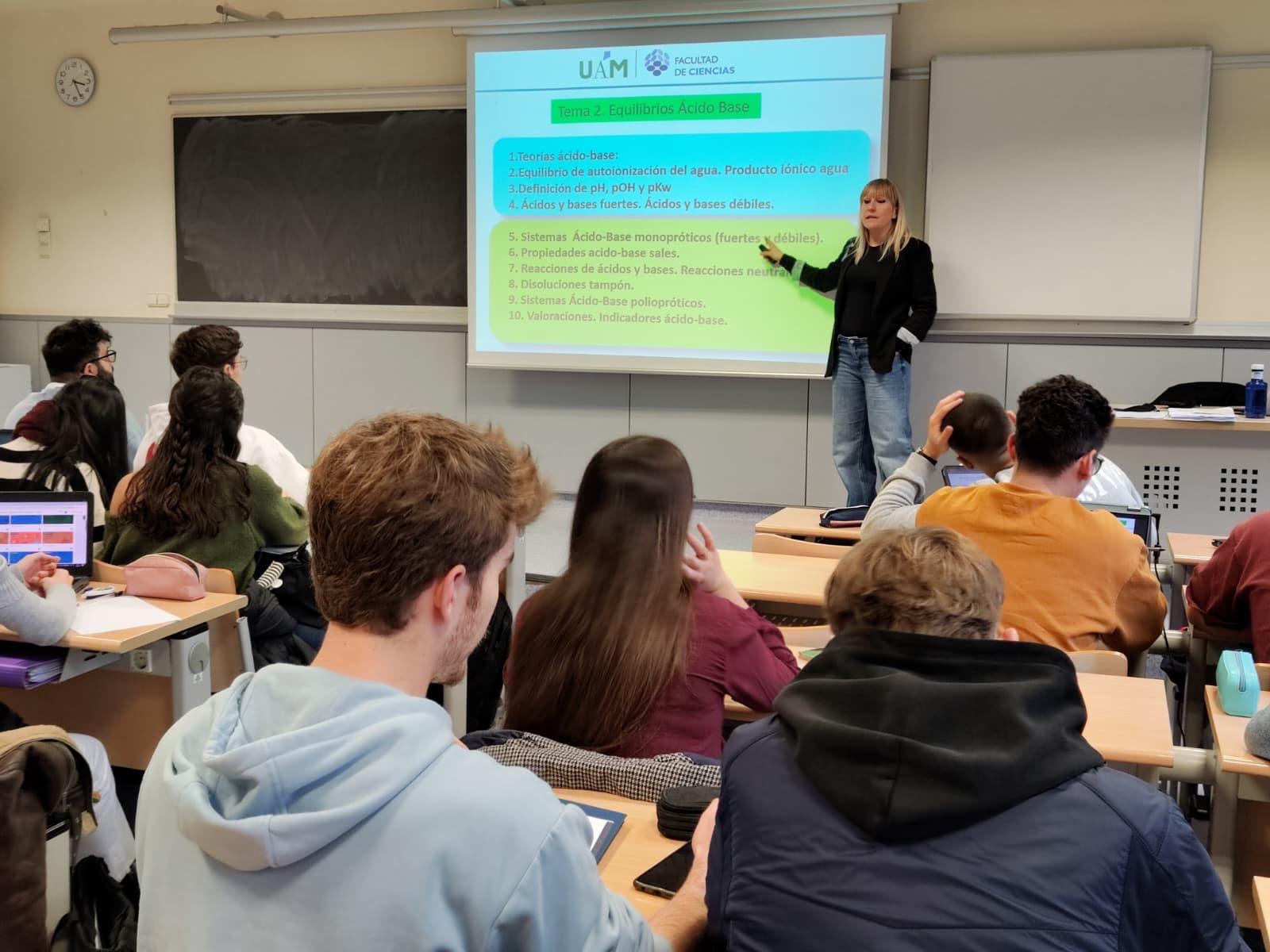 Aun así, en la carrera investigadora aparece lo que se conoce como ‘efecto tijera’. Muchas mujeres comienzan en ciencia, pero solo un pequeño porcentaje llega a puestos de responsabilidad. Ella, como profesora, lo ve en el día a día. “Sí, hay más chicas, químicas es una carrera que, cuando yo estudié éramos 50-50 y ahora creo que hay más mujeres, nos vamos a comer el mundo”, comenta entre risas, “pero es verdad que hay muchos más hombres que mujeres directores departamento”.