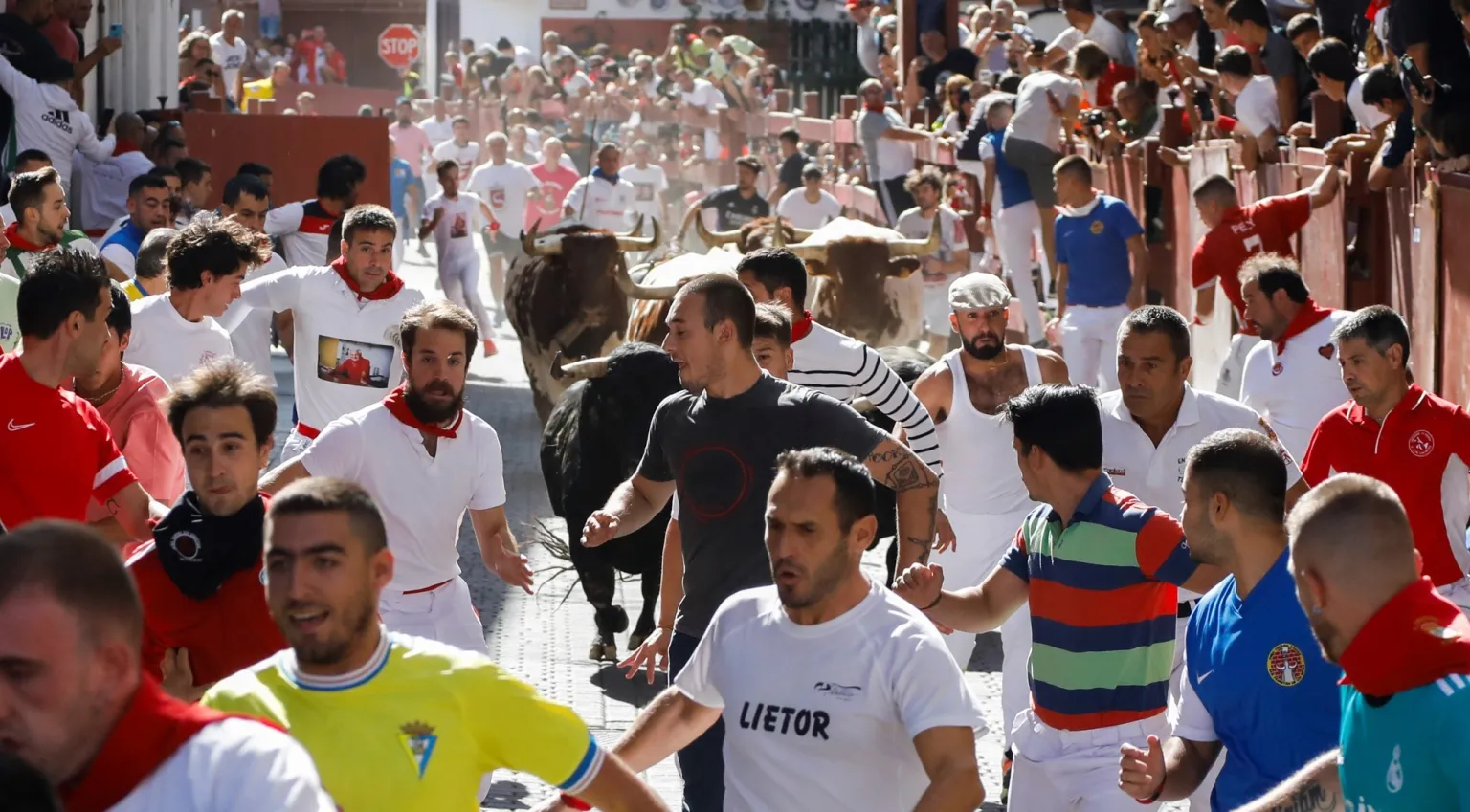 Los toros pertenecientes a la ganadería Carmen Valiente (Coria. Cáceres) han hecho un encierro rápido, con momentos de riesgo y emoción, al separarse dos de ellos de la manada en la calle Postas y permanecer por delante durante todo el recorrido, lo que ha permitido “coger toro” a muchos corredores.