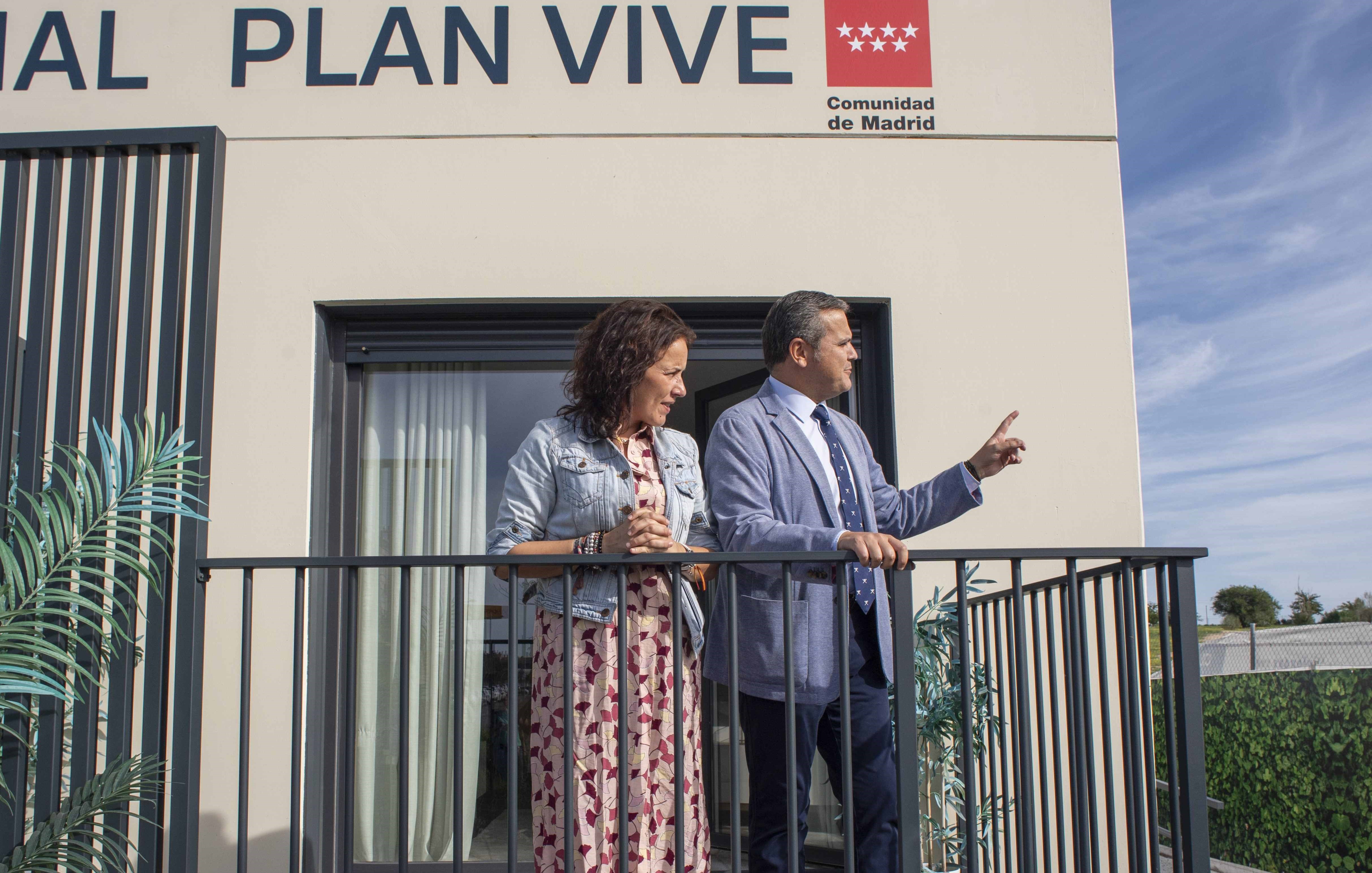 La alcaldesa Lucía S. Fernández ha acompañado al consejero de Vivienda, Transportes e Infraestructuras, Jorge Rodrigo, en su visita al piso piloto de la calle Arribes del Duero, donde se ofrece información de la promoción del Plan VIVE de la Comunidad de Madrid.