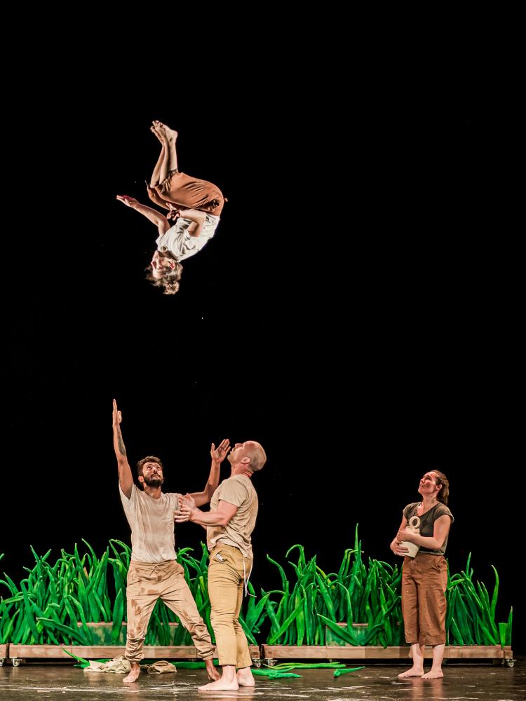 La danza y circo como medio, los cultivos de arroz como excusa y el estrés hídrico como tema principal. Esta pieza surge al involucrarnos en la naturaleza a través del movimiento.